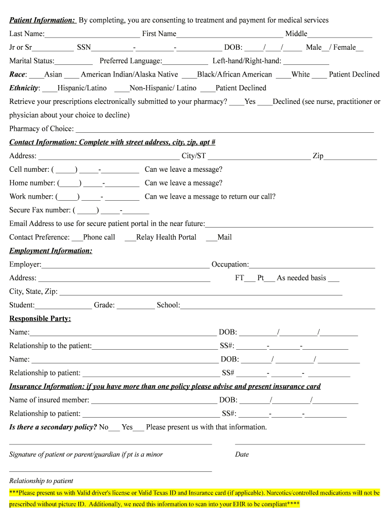 Get the free Patient Information Form