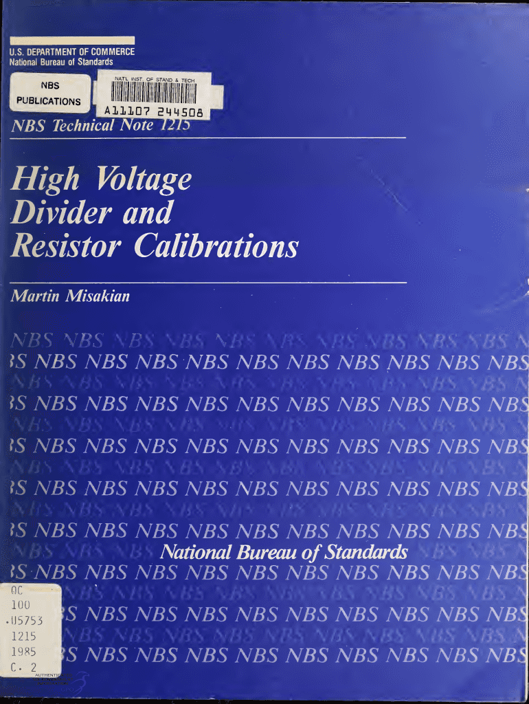 GG MjgjgTiyjgJ g U.S.DEPARTMENT OF COMMERCENational Bureau of Standards. AT 'L INS TOF STANDNBSSTECHPUBLICATIONSA111D7 E sDflNBSTechnicalHighNoteVoltageDivider and Resistor Calibrations Martin Misalign