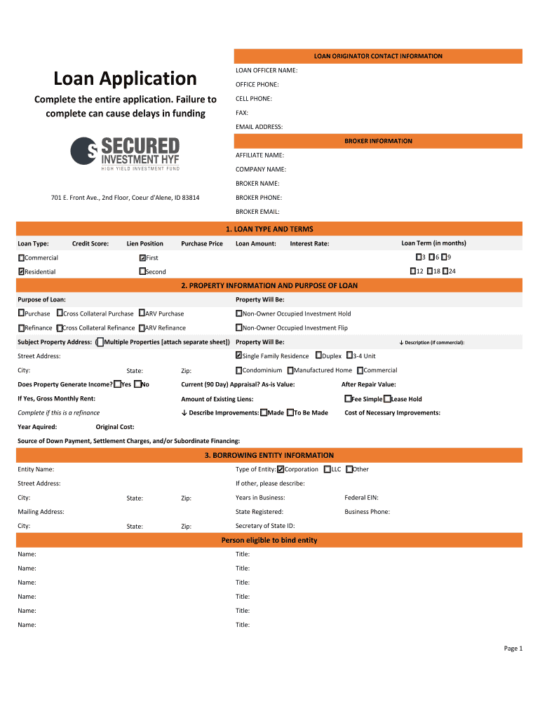 LOAN ORIGINATOR CONTACT Informational ApplicationLOAN OFFICER NAME: OFFICE PHONE:Complete the entire application. Failure to complete can cause delays in fundingCELL PHONE: FAX: EMAIL ADDRESS: BROKER