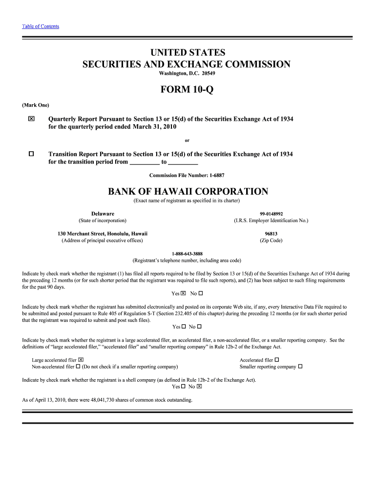 Get the free FORM 10-Q - Investor Relations - Bank of Hawaii