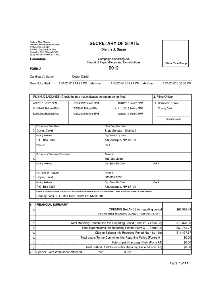(800) 4773632/(505) 8273600SECRETARY OF STATE