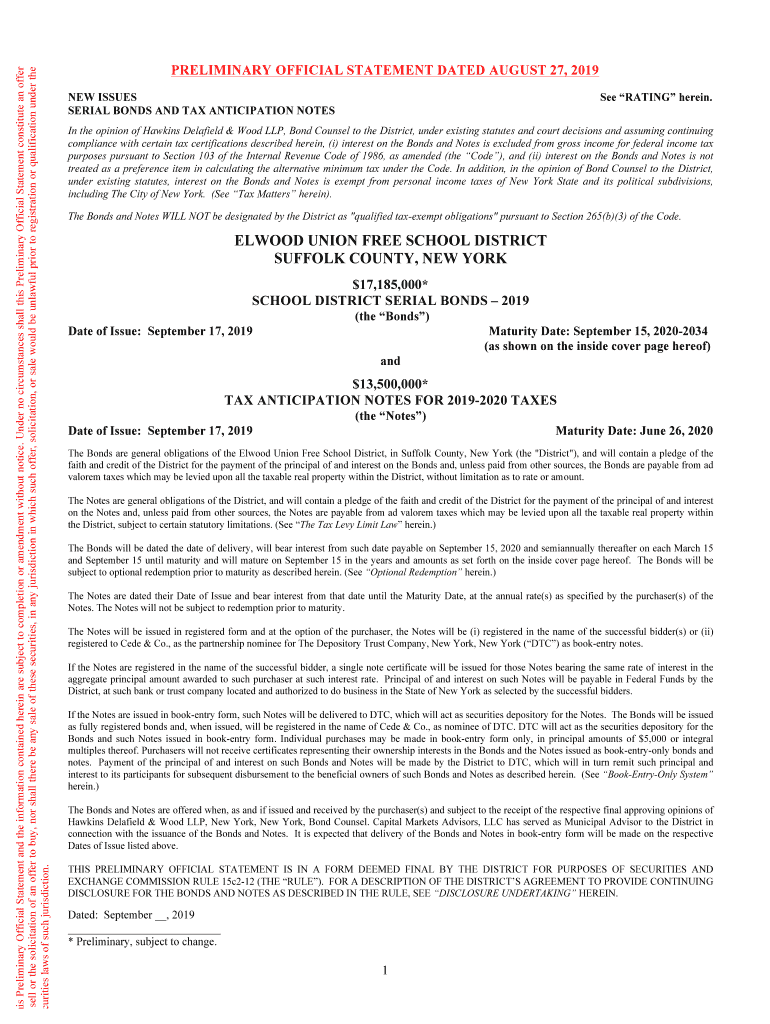 The preliminary official statement dated is a document outlining key information about a municipal bond offering.
