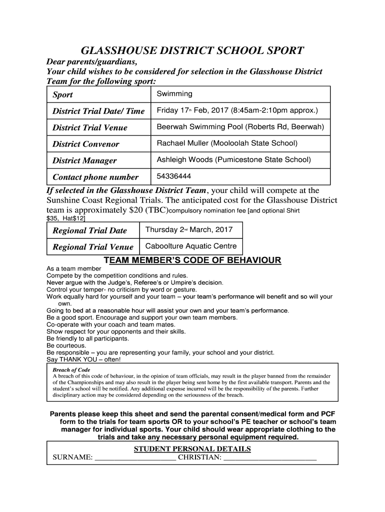 SportSwimmingDistrict Trial Date/