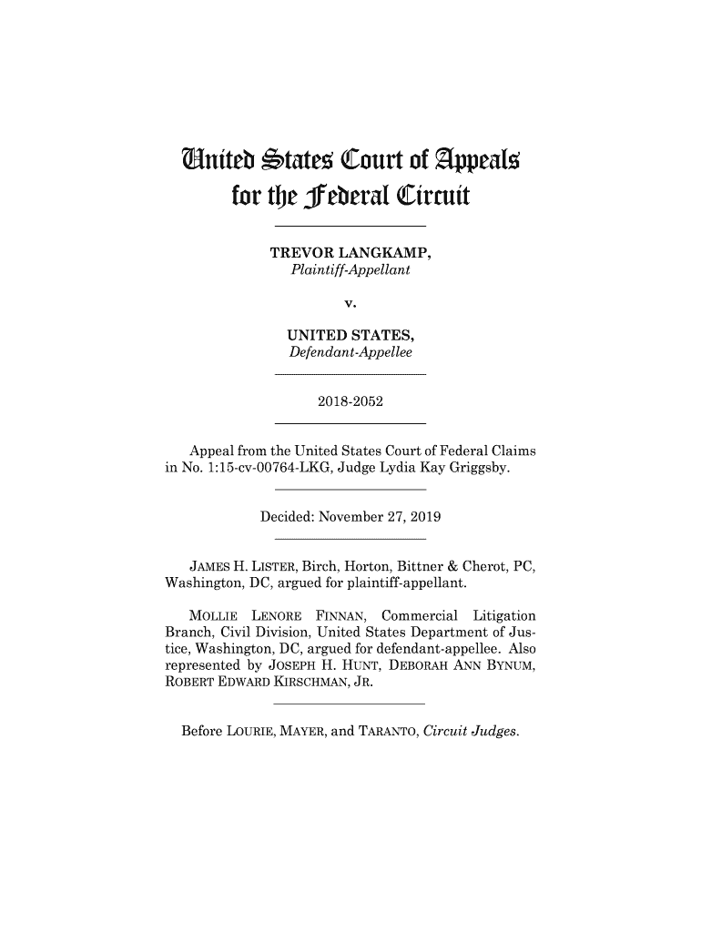 Get the free Langkamp v. United States, No. 18-2052 (Fed. Cir ... - Justia Law