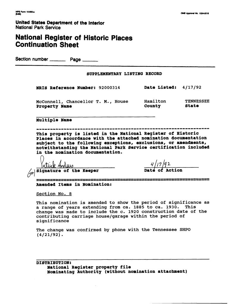 Form KMWHUnited States Department of the Interior National Park ServiceNational Register of Historic Places Continuation Sheet Section number Page SUPPLEMENTARY LISTING RECORD NRI8 Reference Number: