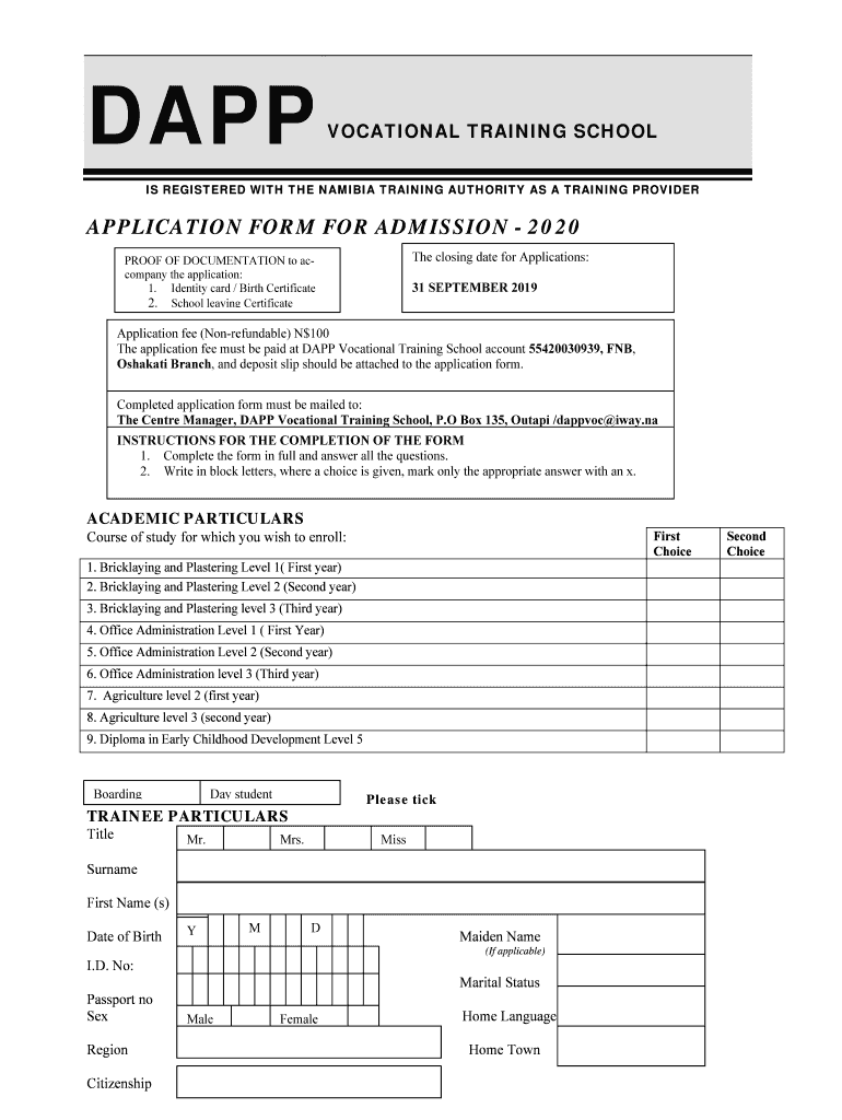 Get the free application form for admission - 2020 - DAPP Namibia