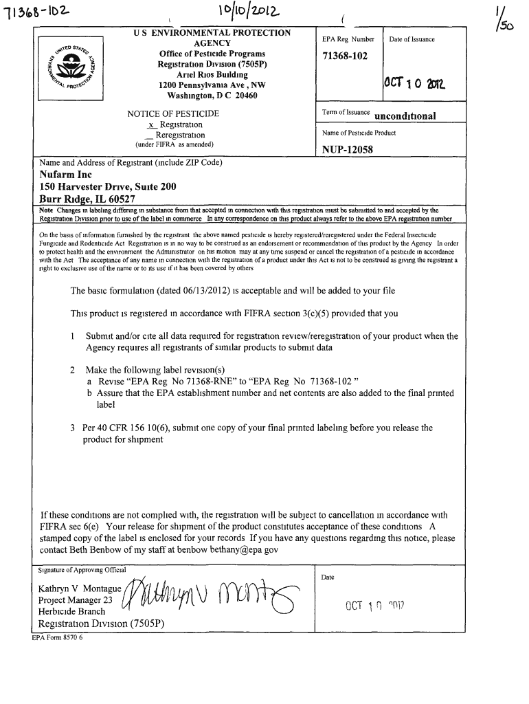 Get the free US EPA, Pesticide Product Label, NUP-12058, 10/10/2012. Pesticide Product Label, NUP...