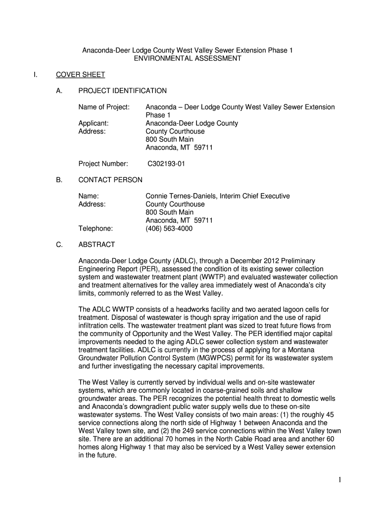 Get the free Anaconda Deer Lodge West Valley Sewer Ext EA Grant to connect West Valley Septic Tan...
