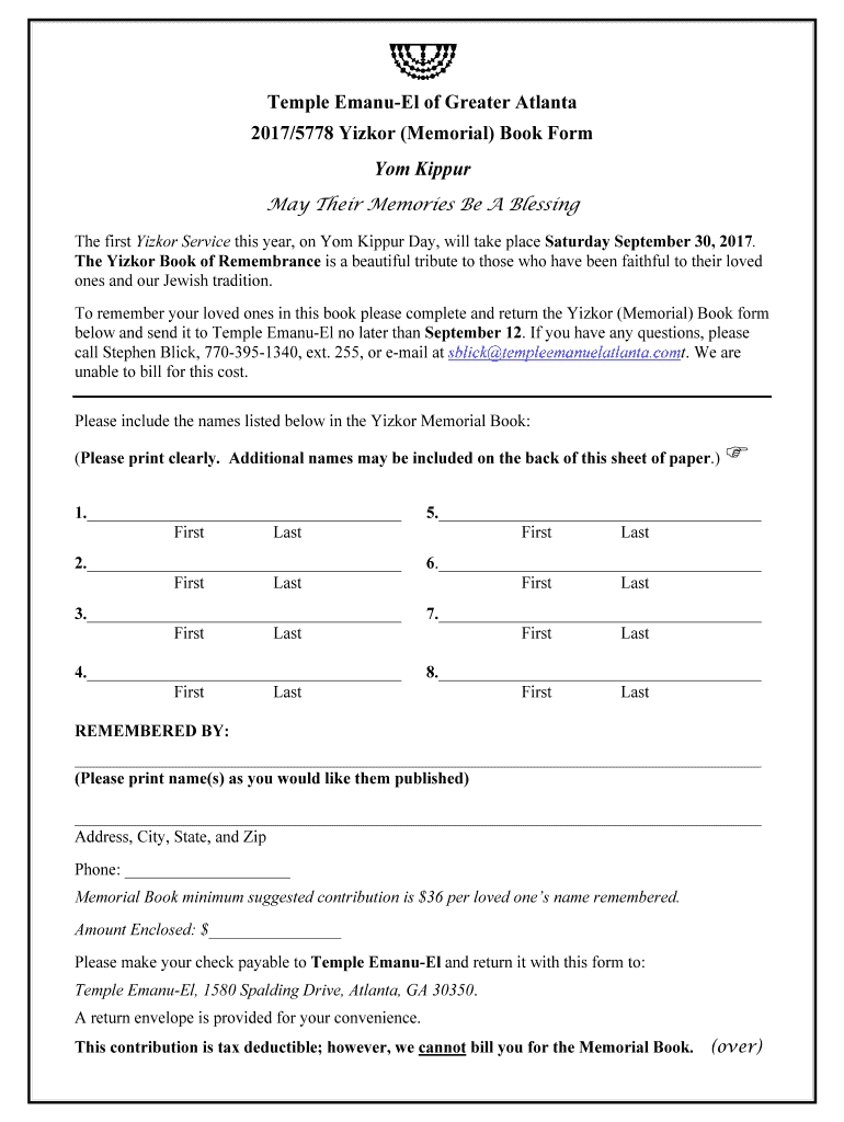 Get the free Yizkor memorial Book - Include your loved one in our ...