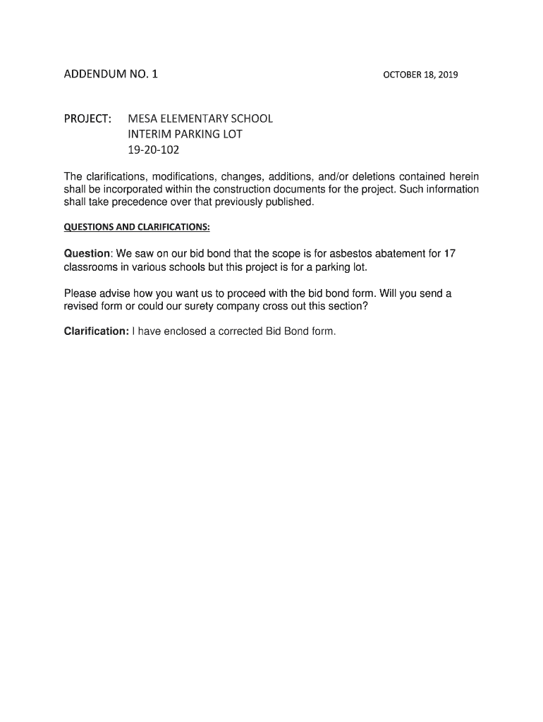 PROJECT:OCTOBER 18, 2019MESA ELEMENTARY SCHOOL