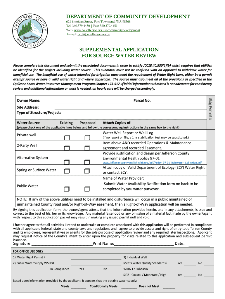 DEPARTMENT OF COMMUNITY DEVELOPMENT 621 Sheridan Street, Port Townsend, WA 98368 Tel: 360.379.4450 Fax: 360.379.4451 Web: www.co.jefferson.wa.us/communitydevelopment Email: DCD co. Jefferson. Wei.supplemental