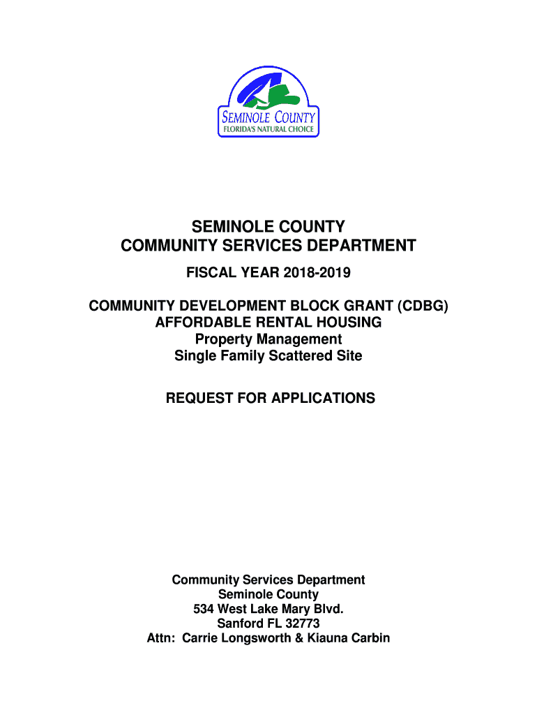 SEMINOLE COUNTY COMMUNITY SERVICES DEPARTMENT FISCAL YEAR 20182019 COMMUNITY DEVELOPMENT BLOCK GRANT (CBG) AFFORDABLE RENTAL HOUSING Property Management Single Family Scattered Site REQUEST FOR APPLICATIONSCommunity