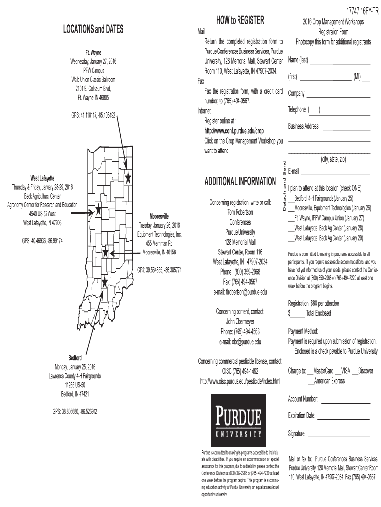 LOCATIONS and DATES GPS: 41.118115, 85.108492GPS: 40.46936, 86.99174ADDITIONAL INFORMATION