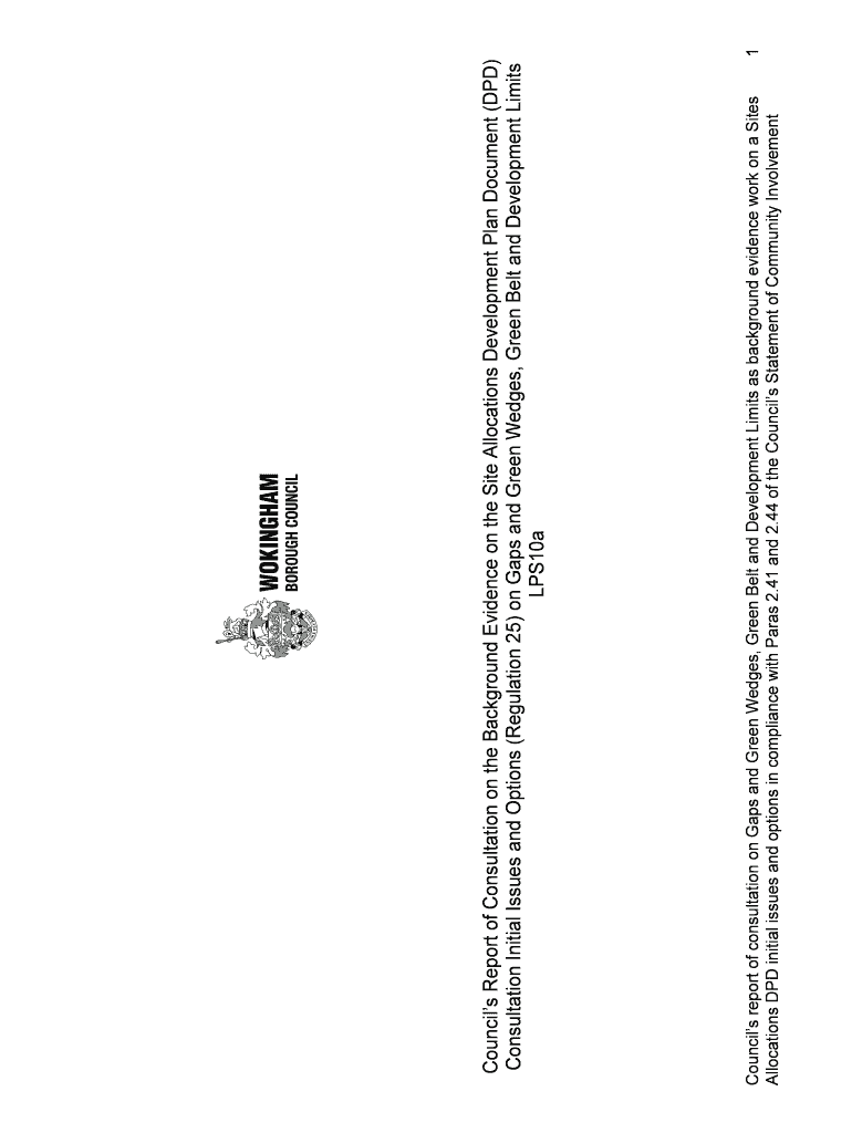 Councils report of consultation on Gaps and Green Wedges, Green Belt and Development Limits as background evidence work on a Sites