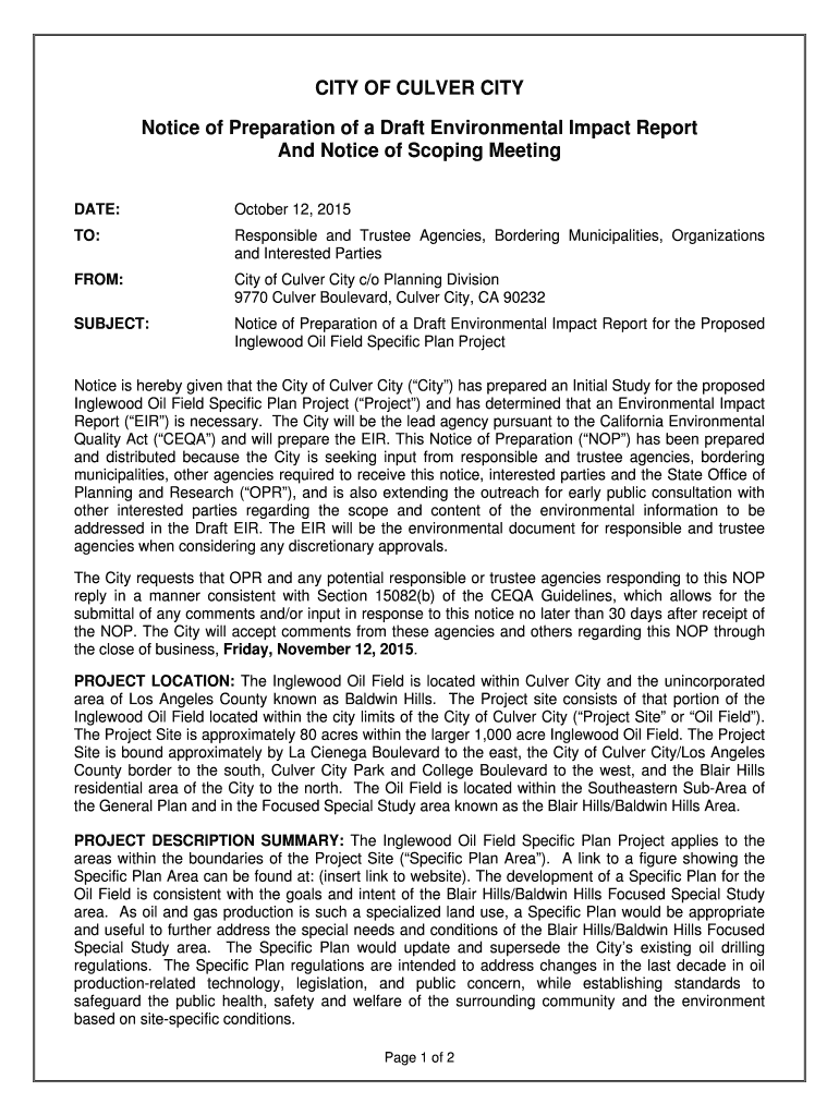 DATE:October 12, 2015TO:Responsible and Trustee Agencies, Bordering Municipalities, Organizations