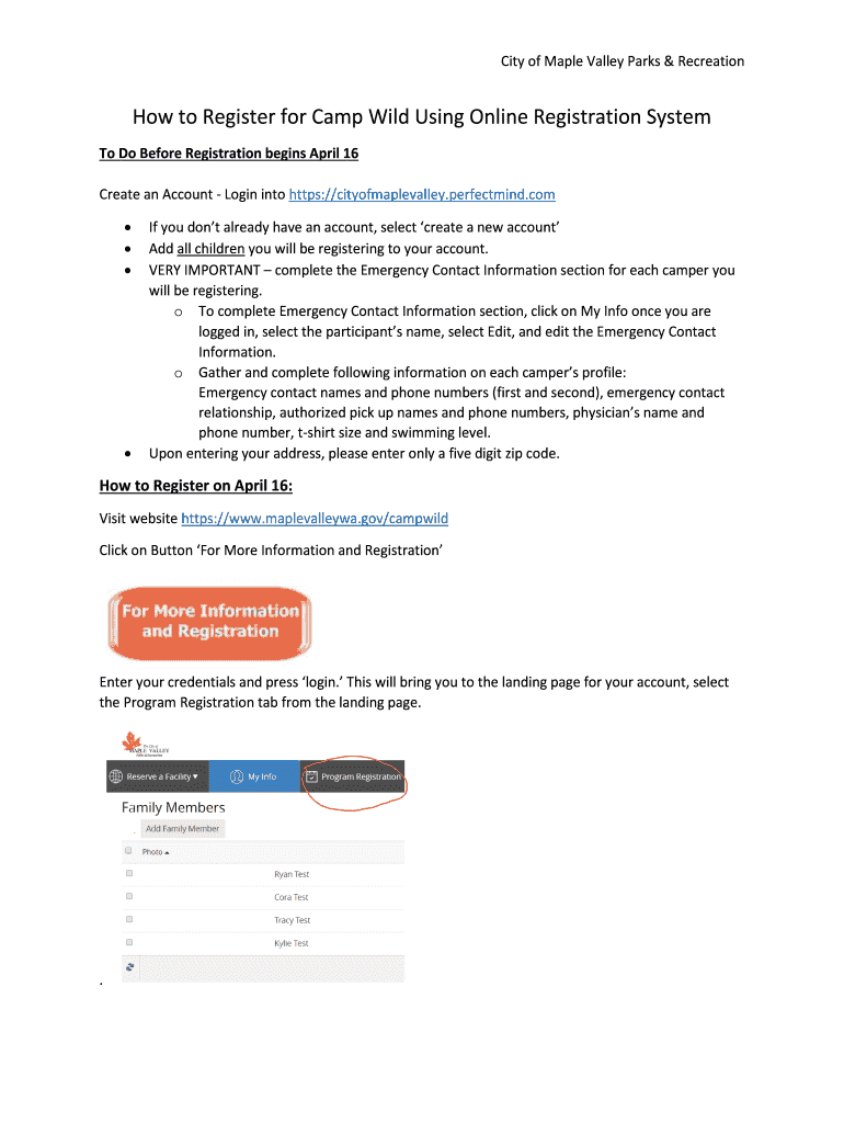 Get the free How to Register for Camp Wild Using Online Registration ...