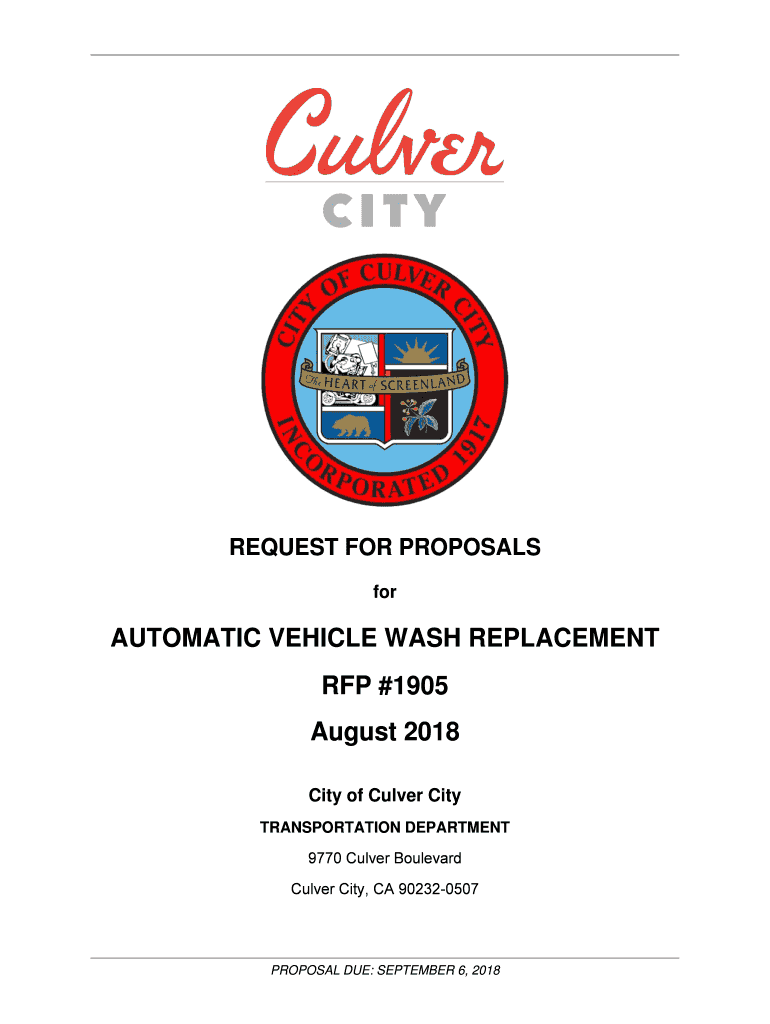 Culver City, CA 902320507PROPOSAL DUE: SEPTEMBER