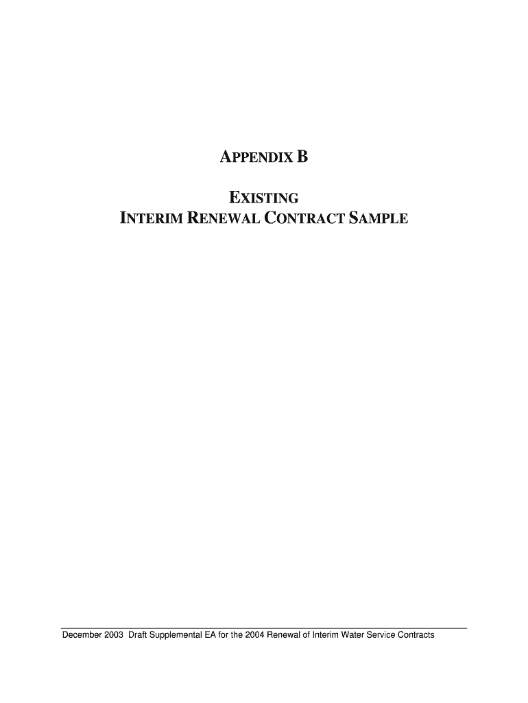 APPENDIX B EXISTING INTERIM RENEWAL CONTRACT SAMPLE December 2003 Draft Supplemental EA for the 2004 Renewal of Interim Water Service Contracts1 2 3 4Irrigation and/or M&I R.O. Draft 12/122003 R.O.