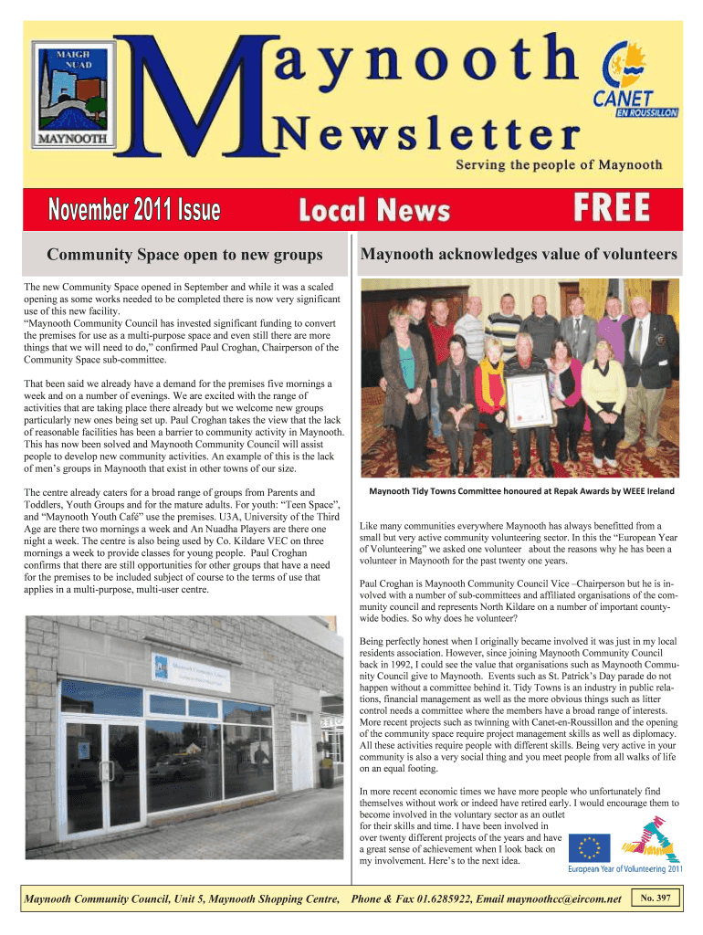 Community Space open to new groupsMaynooth acknowledges value of volunteers new Community Space opened in September and while it was a scaled