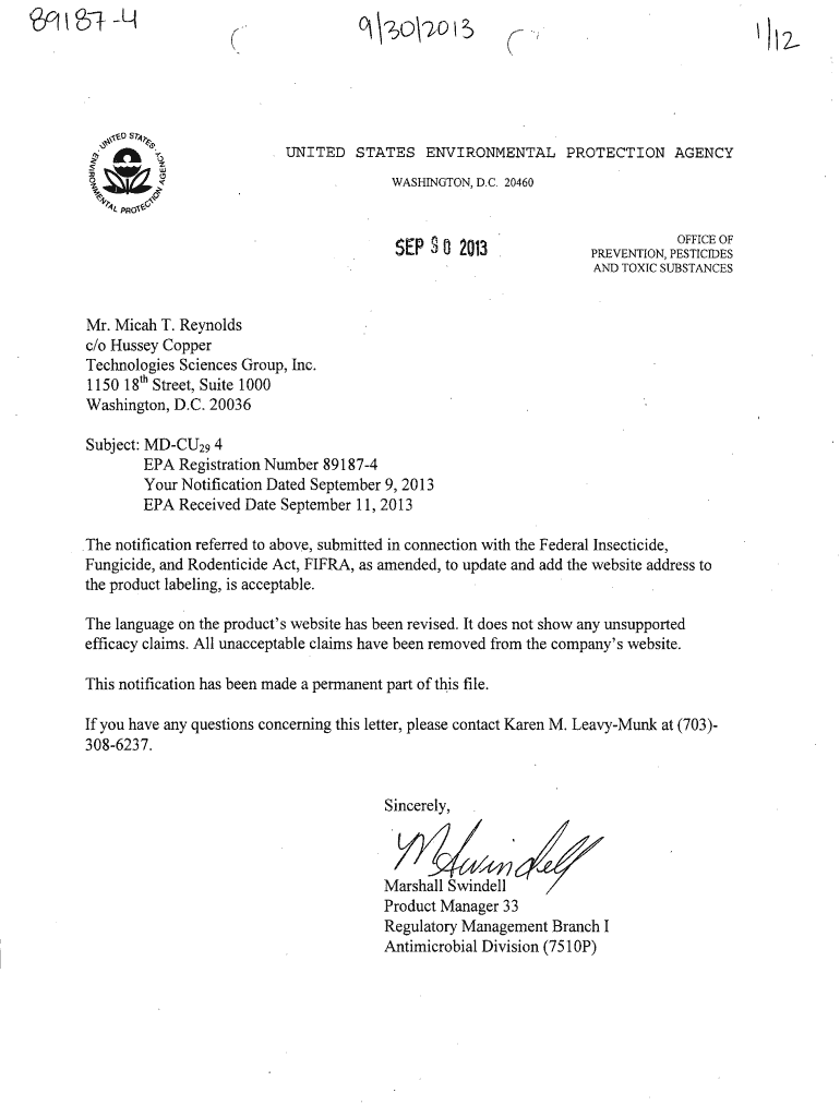 WASHINGTON, D.C. 20460SEP S Q 2013OFFICE OF