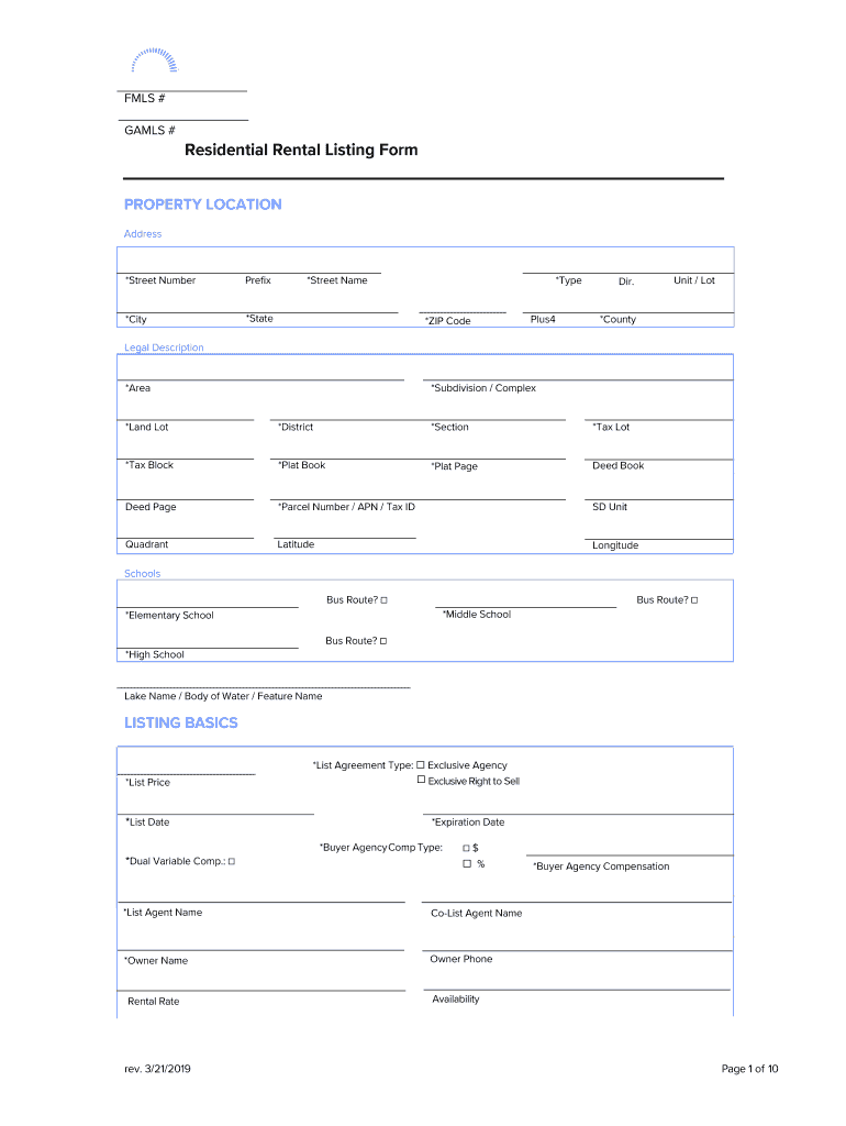 FLS # GAMES #Residential Rental Listing FormPROPERTY LOCATION Address×Street NumberPrefix×City×State×Street Name×Type *ZIP CodePlus4Unit / Lot Dir. *CountyLegal Description *Area×Subdivision
