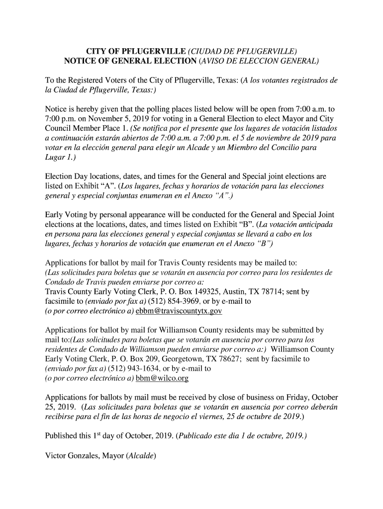 Get the free Notice of General ElectionPflugerville NewsCity of ...