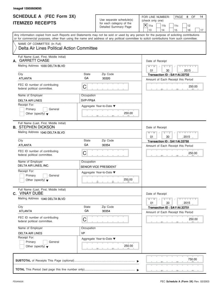 Image# 15950609095SCHEDULE A (FEC Form 3X)