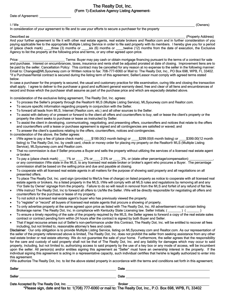 Get the free Exclusive Agency Listing Agreement