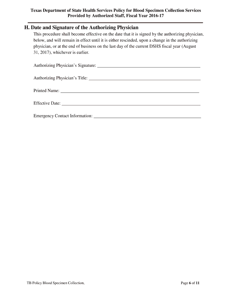 Texas Department of State Health Services Policy for Blood Specimen Collection Services