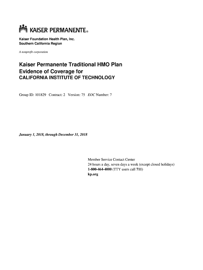 A nonprofit corporation #7 Kaiser Permanent Traditional HMO Plan