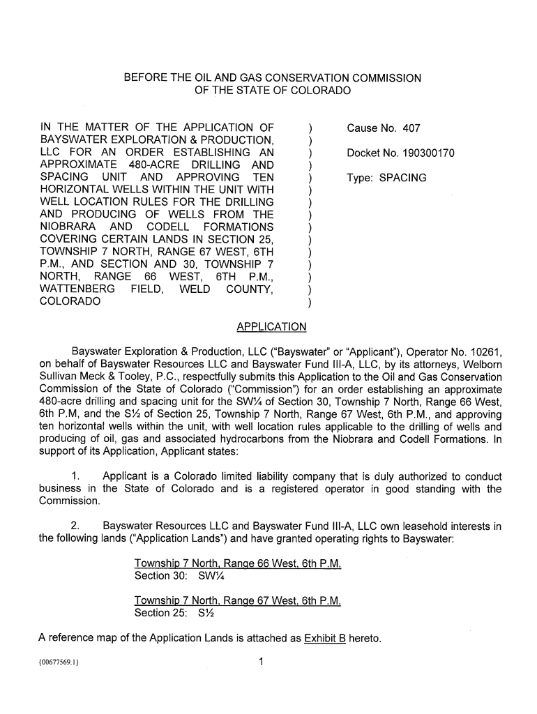 BEFORE THE OIL AND GAS CONSERVATION COMMISSION OF THE STATE OF COLORADOAN THE MATTER OF THE APPLICATION OF BACKWATER EXPLORATION & PRODUCTION, LLC FOR AN ORDER ESTABLISHING AN APPROXIMATE 480ACRE