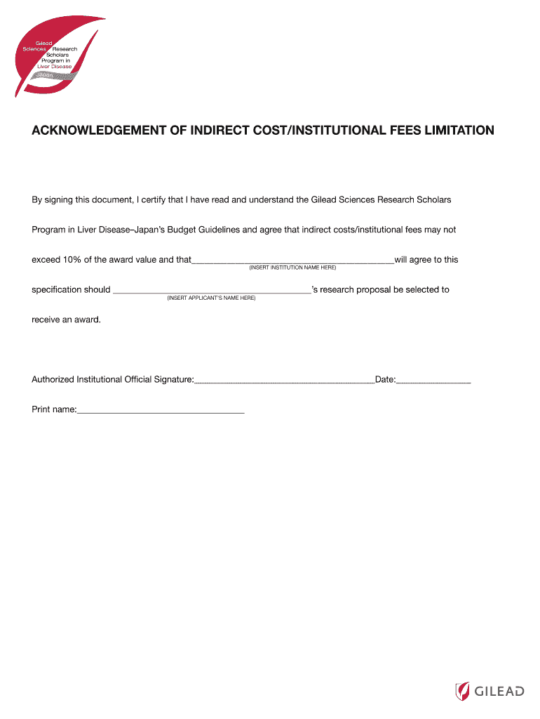 ACKNOWLEDGEMENT OF INDIRECT COST/INSTITUTIONAL FEES limitations signing this document, I certify that I have read and understand the Gilead Sciences Research Scholars Program in Liver DiseaseJapans