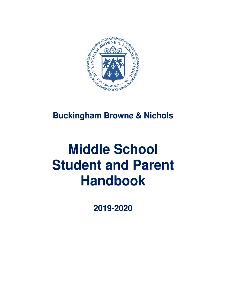 Buckingham Browne & NicholsMiddle School Student and Parent Handbook 20192020Middle School Student and Parent Handbook Please refer to the School Handbook on our website at www.bbns.org in addition