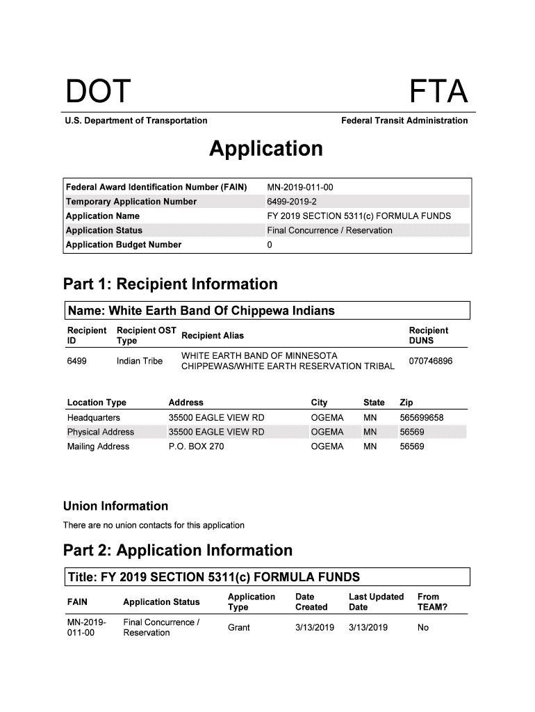 DOTTED. S. Department of Transportation Federal Transit AdministrationApplication