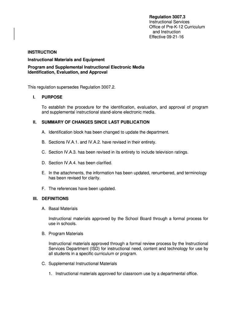 Get the free Regulation 3007.3 Instructional Services Office of Pre ... - BoardDocs