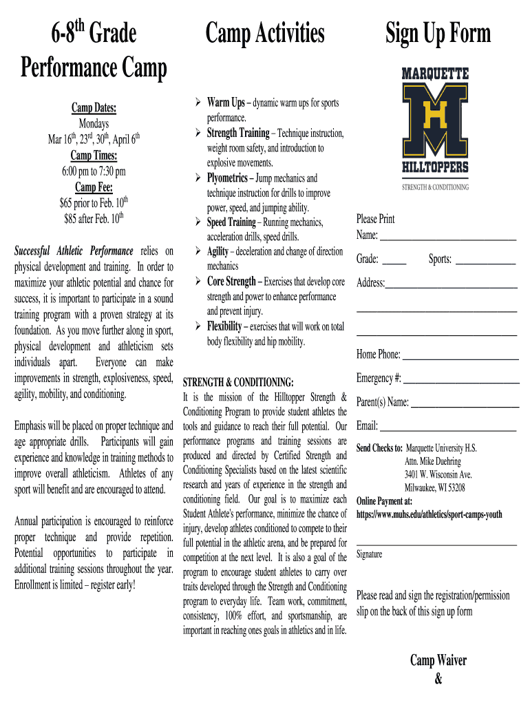 Performance Camp Dates: