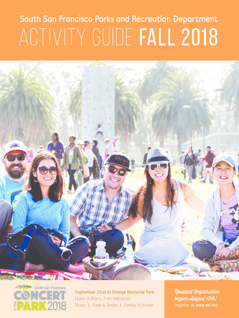 South San Francisco Parks and Recreation DepartmentActivity Guide Fall 20188September 22nd at Orange Memorial Park 11am4:30pm, Free Admission Music Food & Drinks Family ActivitiesResident Registration