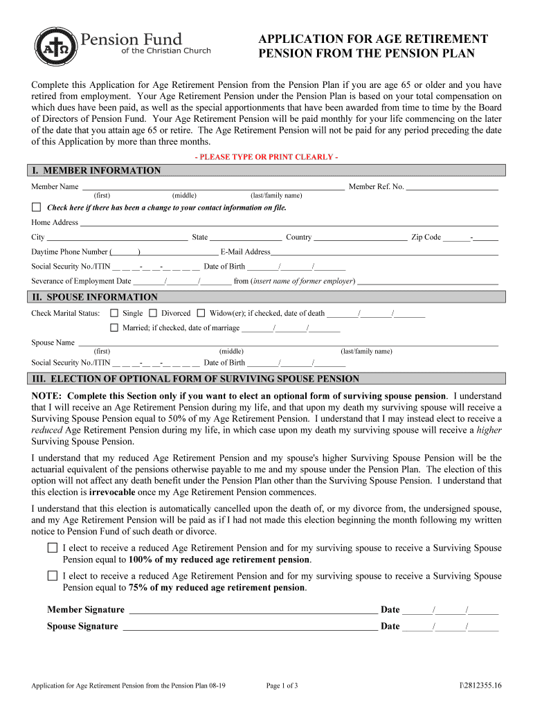 Complete this Application for Age Retirement Pension from the Pension Plan if you are age 65 or older, and you have