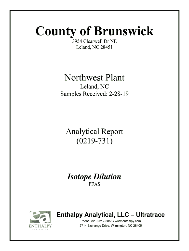 County of Brunswick 3954 Clear well Dr NE Leland, NC 28451Northwest Plant Leland, NC Samples Received: 22819Analytical Report (0219731)Isotope Dilution PFASEnthalpy Analytical, LLC Ultratrace Phone: