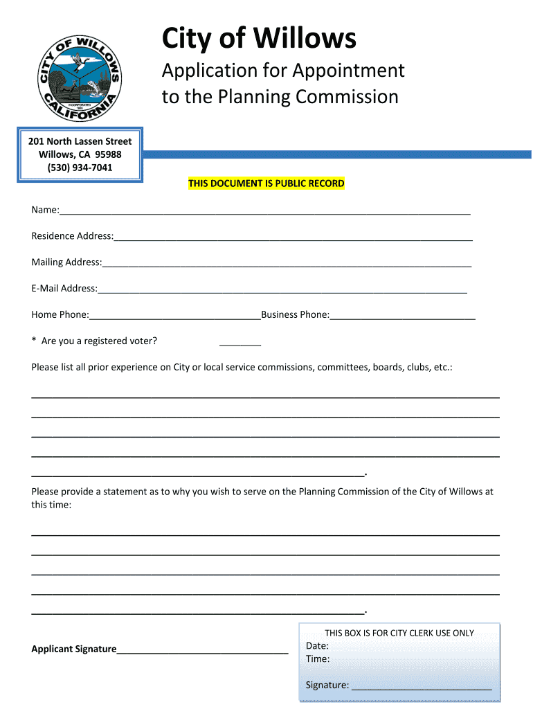 City of WillowsApplication for Appointment