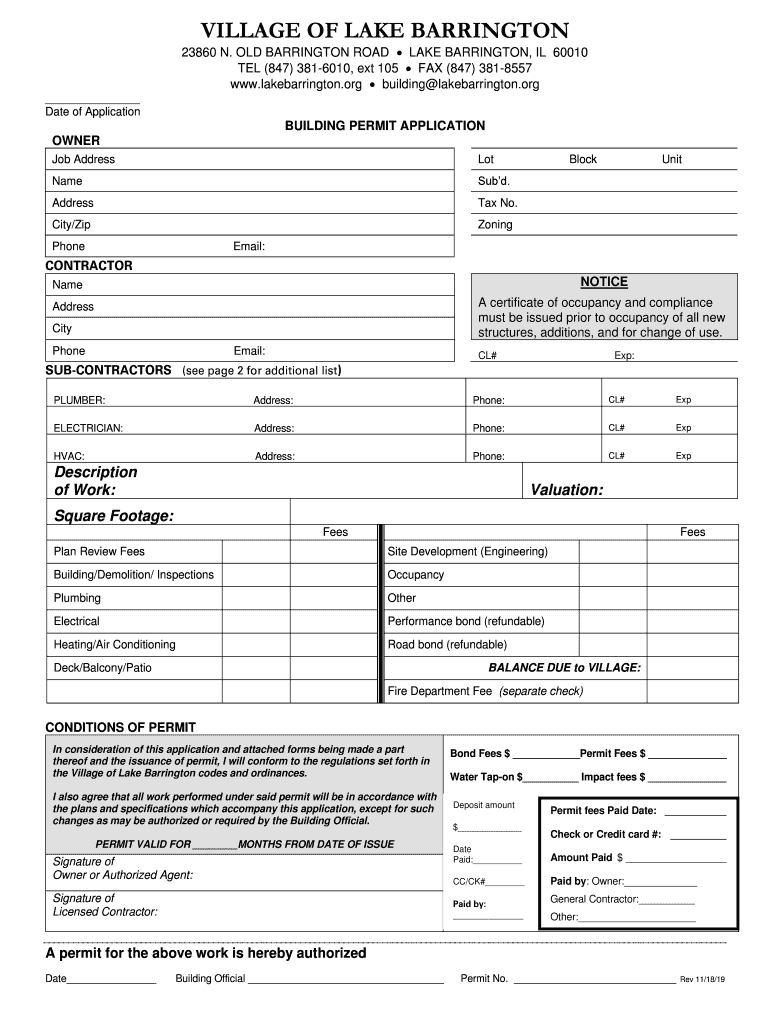 Get the free VILLAGE OF LAKE BARRINGTON. BUILDING PERMIT APPLICATION