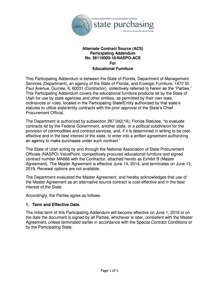 Educational FurnitureThis Participating Addendum is between the State of Florida, Department of Management