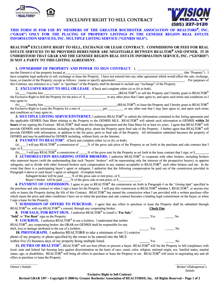 Get the free Exclusive Right to Sell Contract