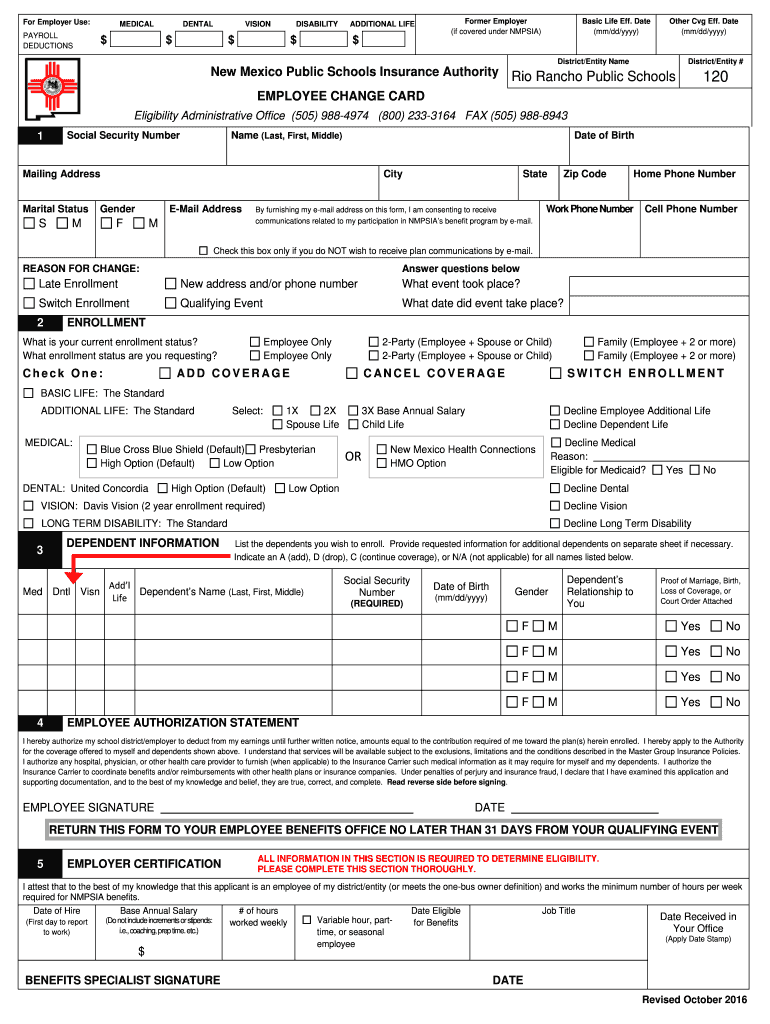 Get the free New Mexico Public Schools Insurance Authority Rio Rancho Public Schools
