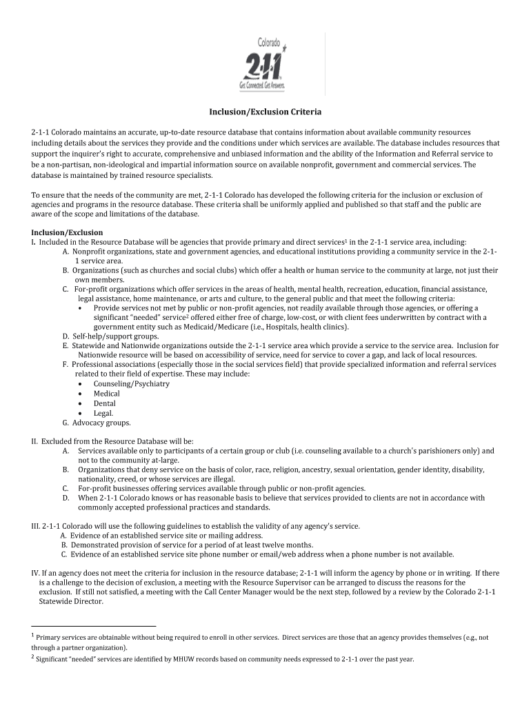 Get the free 232-HELP/211 Resource File and Inclusion / Exclusion Criteria