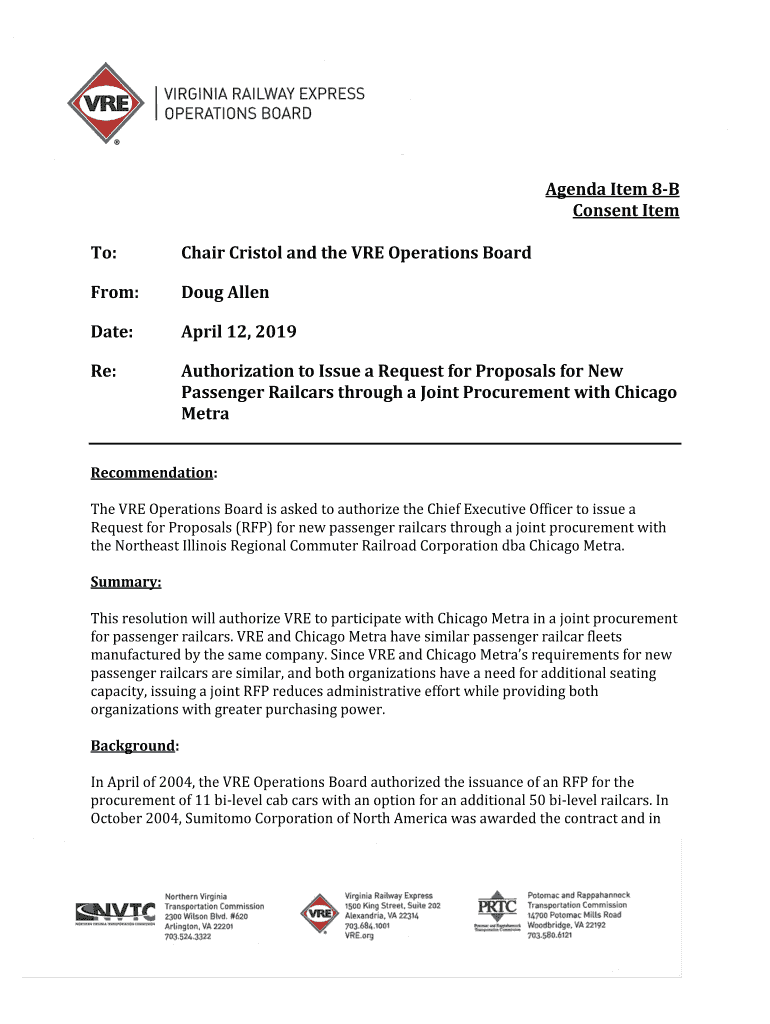 Get the free Agenda Item 8-B Consent Item To: Chair Cristol and the VRE ...