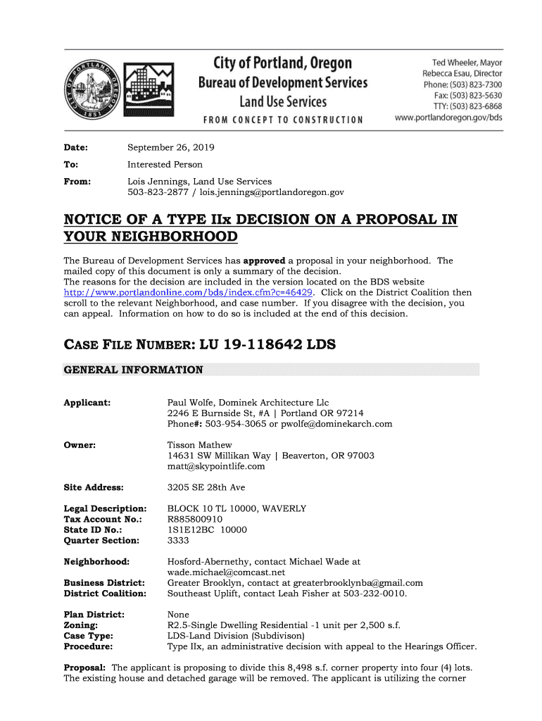 Get the free Notice of a type - PortlandOregon.gov