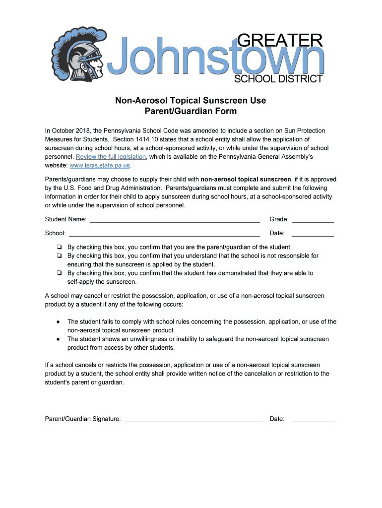 Get the free Non-Aerosol Topical Sunscreen Use Student Form In October ...