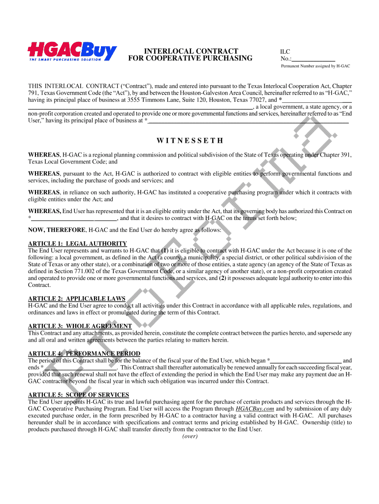 Get the free 791, Texas Government Code (the Act), by and between the Houston-Galveston Area Coun...
