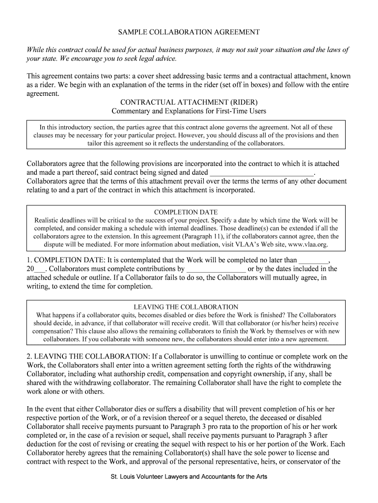 All collaborators who are part of the project must sign the Sample Collaboration Agreement to ensure mutual understanding and legal protection.